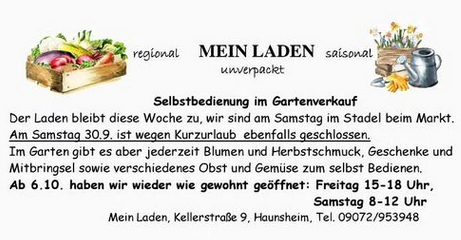 Montag – Sonntag Selbstbedienung im Gartenverkauf